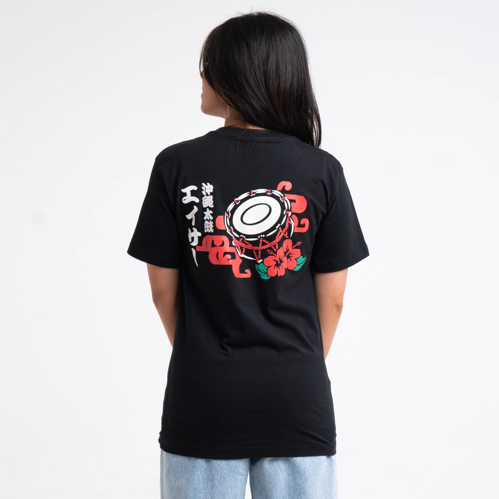 O Eisa é uma dança que utiliza principalmente os instrumentos como o Shime (tambores japoneses) que representamos por meio do Odaiko da estampa, um dos tambores utilizados na dança.